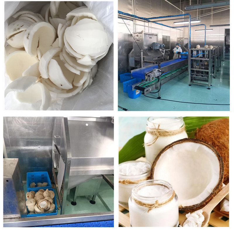 Outros produtos relacionados incluem a máquina de corte de coco, a máquina de processamento de coco e a planta de processamento de suco de coco.